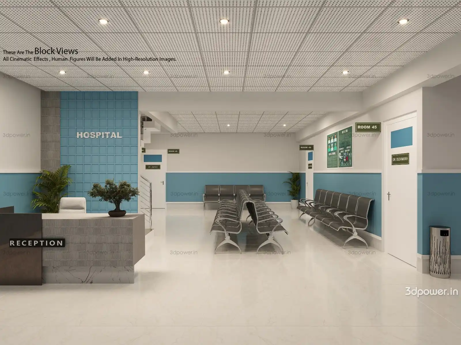 Reception & Waiting, OPD 1–6 with a Medical Shop and Pathology Lab on the diagnostic floor.